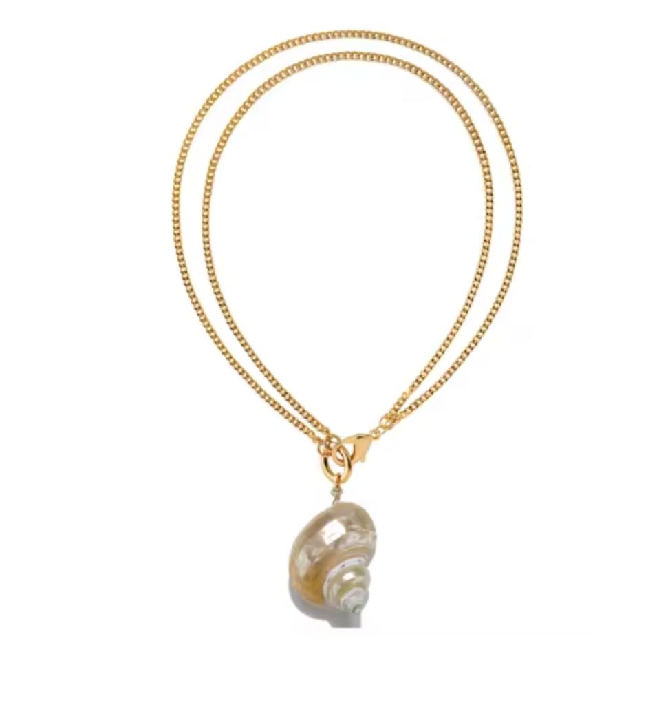collar de doble cadena de acero bañada en oro + shell natural de 4cms
