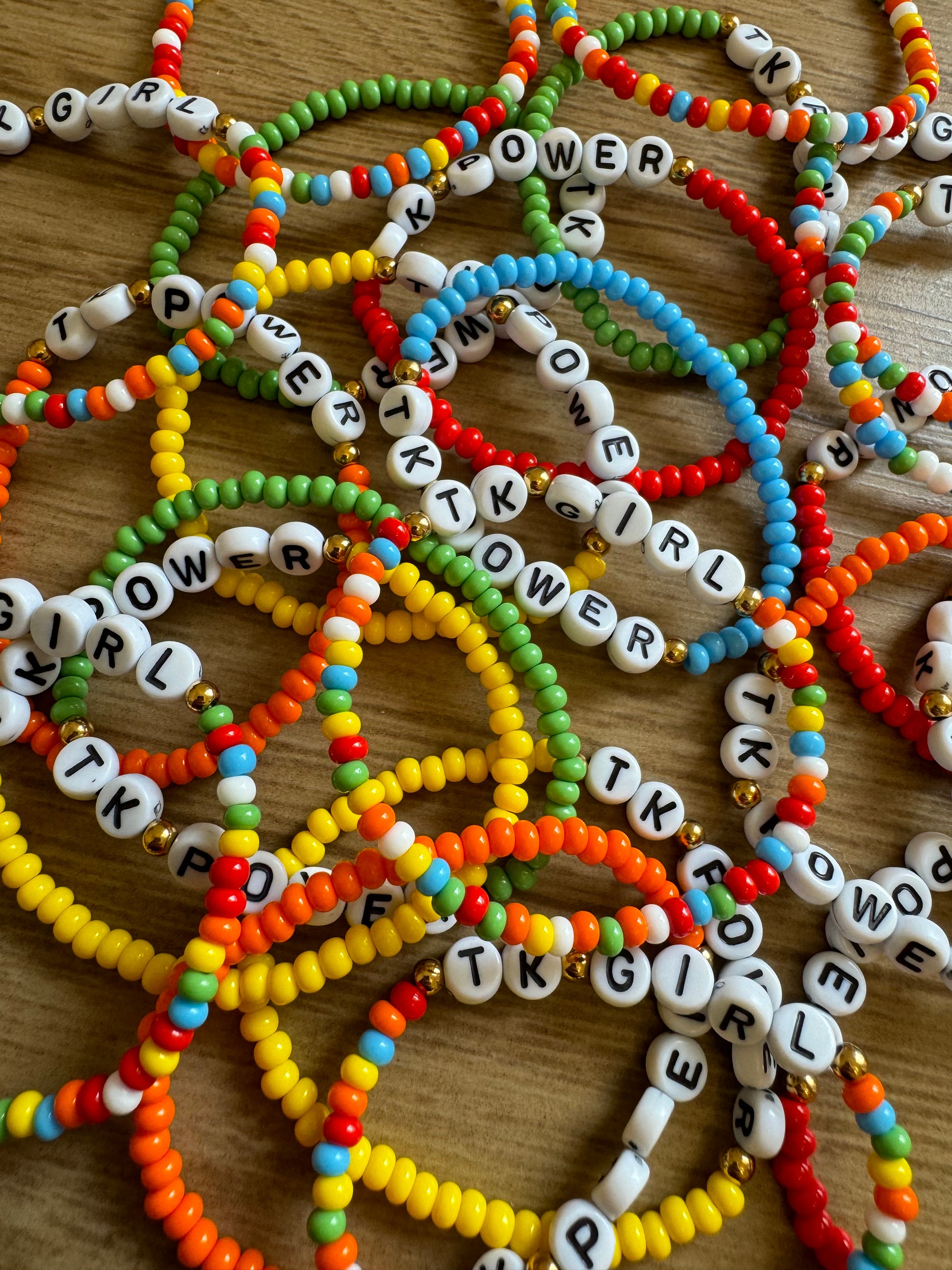 Pulsera de mostacillas con nombre o palabra a elección en letras de plástico