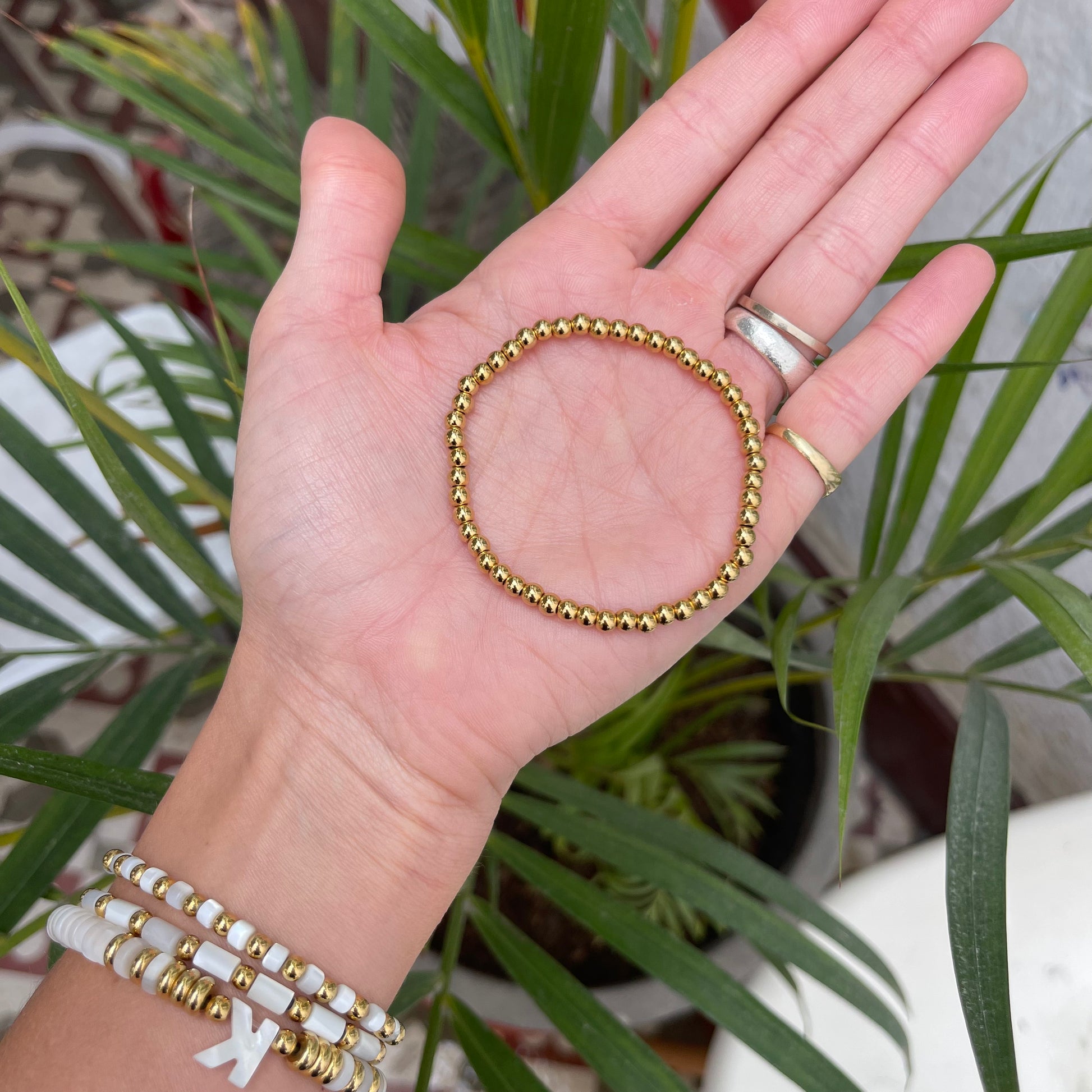 Pulsera de billas doradas de acero inoxidable (sin letras)